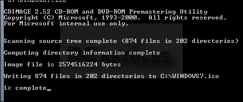 La création de l'image ISO bootable de votre CD de Windows 7 commence alors.